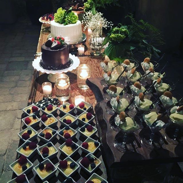 I love dessert, small plates, and beautiful displays and we combine them in our dessert displays! Beautiful display pieces that create vertical structures and composed presentation.