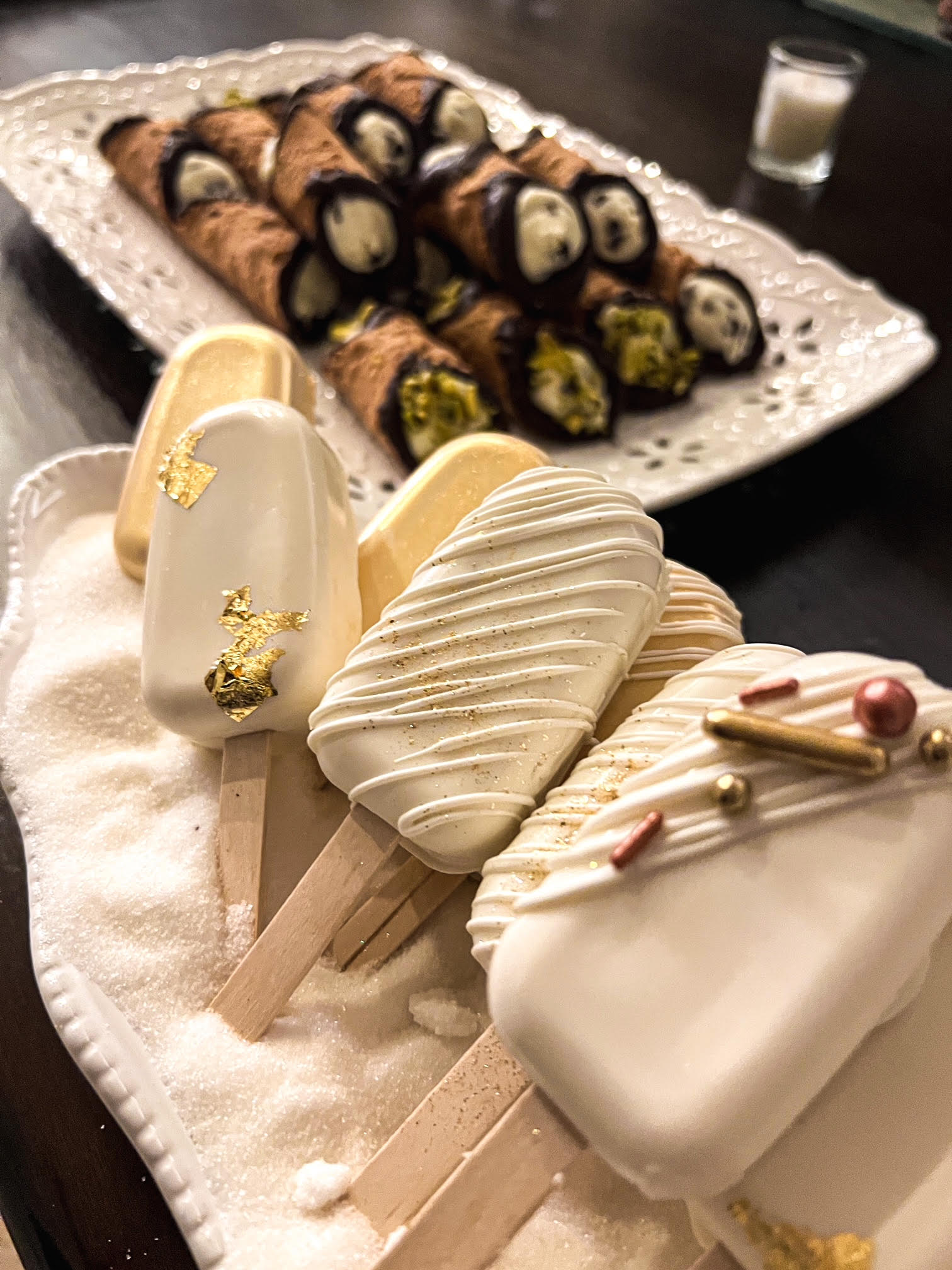 Roaming desserts take the concept of passed desserts one step further by offering an interactive, whimsical experience. Instead of traditional trays, these desserts are presented in creative ways—whether served from a dessert cart, a vintage bicycle, or a whimsical mobile dessert station. The roaming desserts allow guests to encounter a variety of sweet options as they move around the event space, giving a sense of playfulness and excitement. It’s an elevated way to present a variety of desserts, like mini ice cream cones, gourmet cookies, or indulgent chocolate fondue, and adds an element of surprise and movement to the event. Whether through a dessert cart or a roaming server, this approach brings a touch of fun and elegance to the entire event.