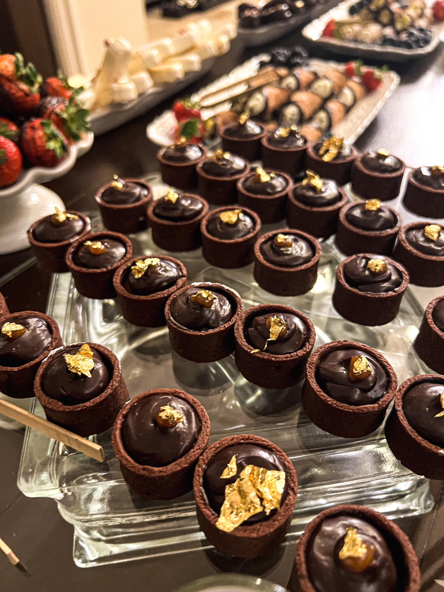 Passed desserts are a delightful way to offer guests a variety of sweet treats in a more elegant, interactive manner. Instead of having a stationary dessert table, servers circulate with trays of beautifully crafted mini desserts that guests can easily enjoy while mingling. This option adds a level of sophistication and ensures that no one has to leave their conversation to indulge in a sweet treat. Each bite-sized dessert is a moment of indulgence, creating a memorable experience that elevates the event’s overall atmosphere. Whether it’s delicate macarons, petite tarts, or chocolate-dipped fruit, passed desserts can be customized to reflect the theme and style of the occasion.